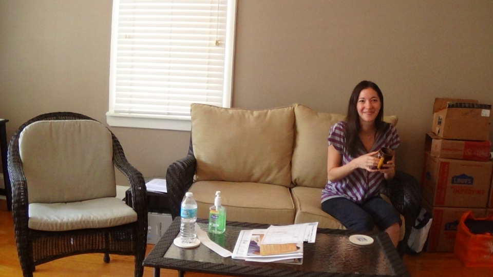 Mariko in her living room (having some tea)