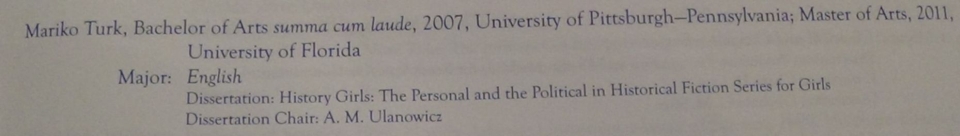 Dissertation - "History Girls: The Personal and the Political in Historical Fiction Series for Girls"