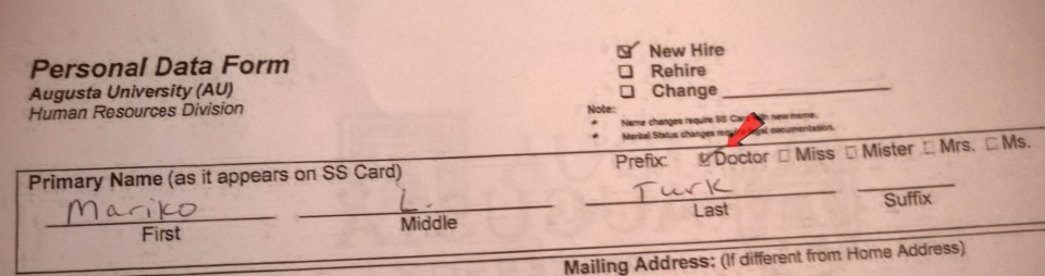 First work form requesting Mariko's title prefix